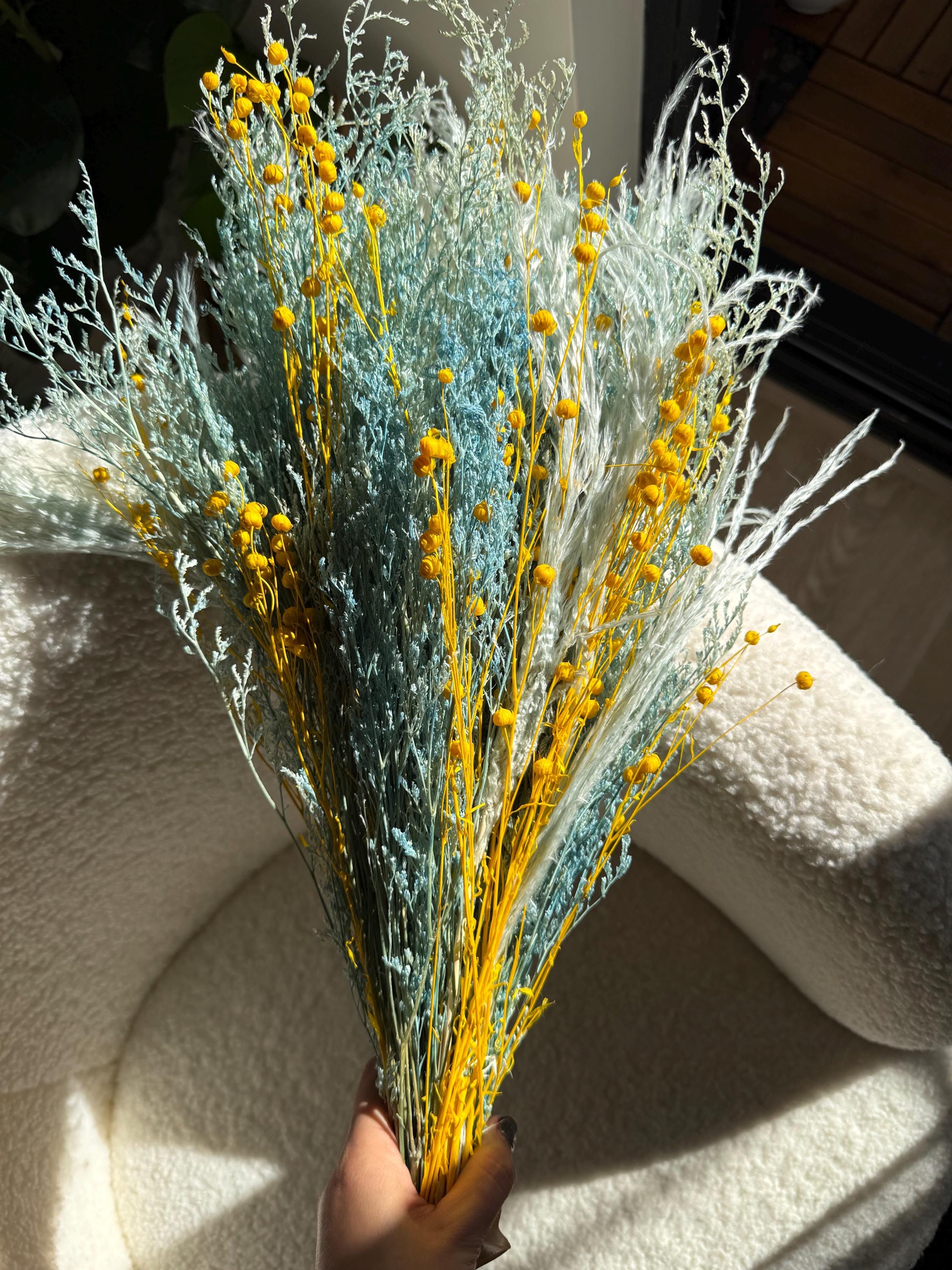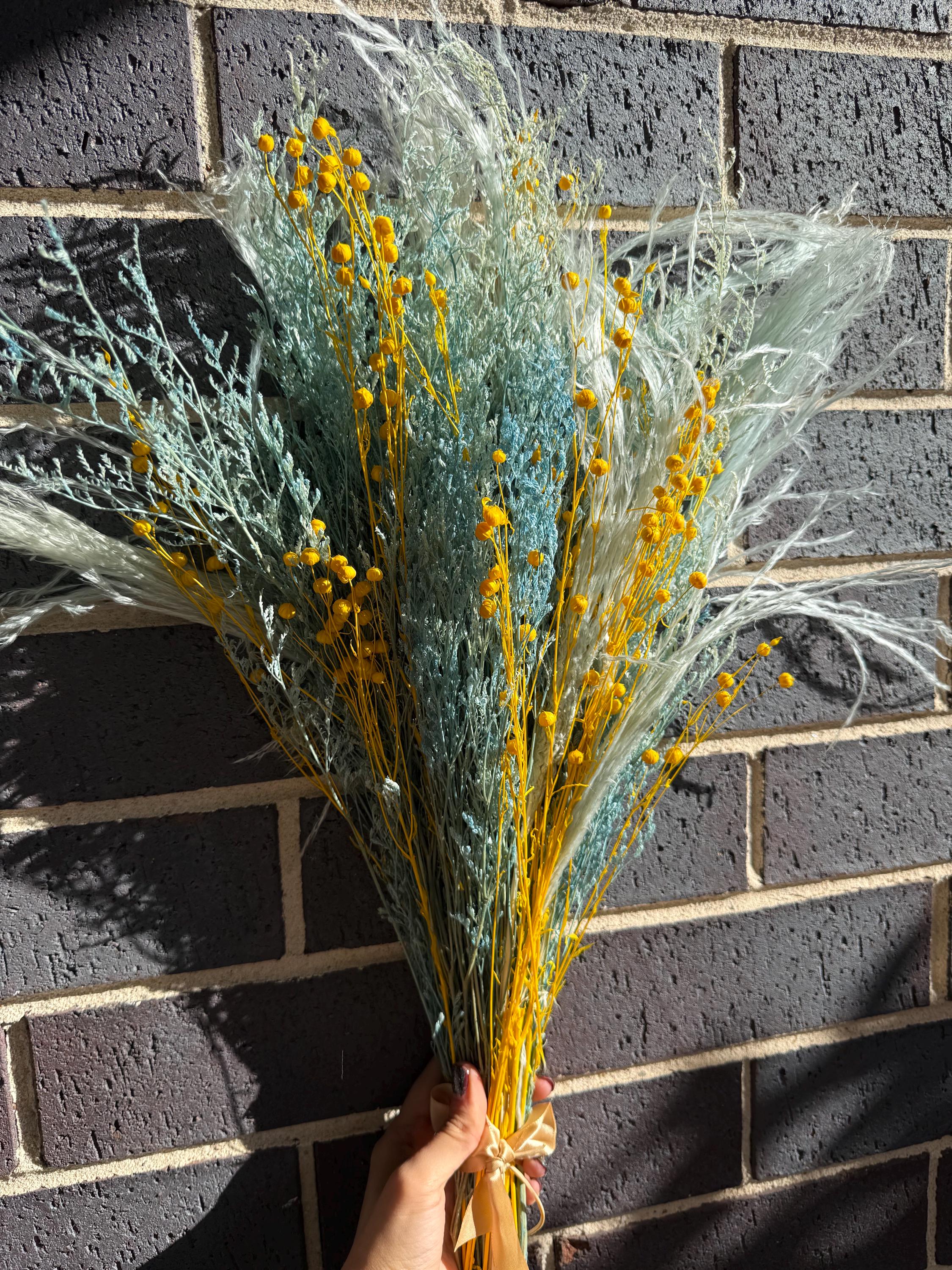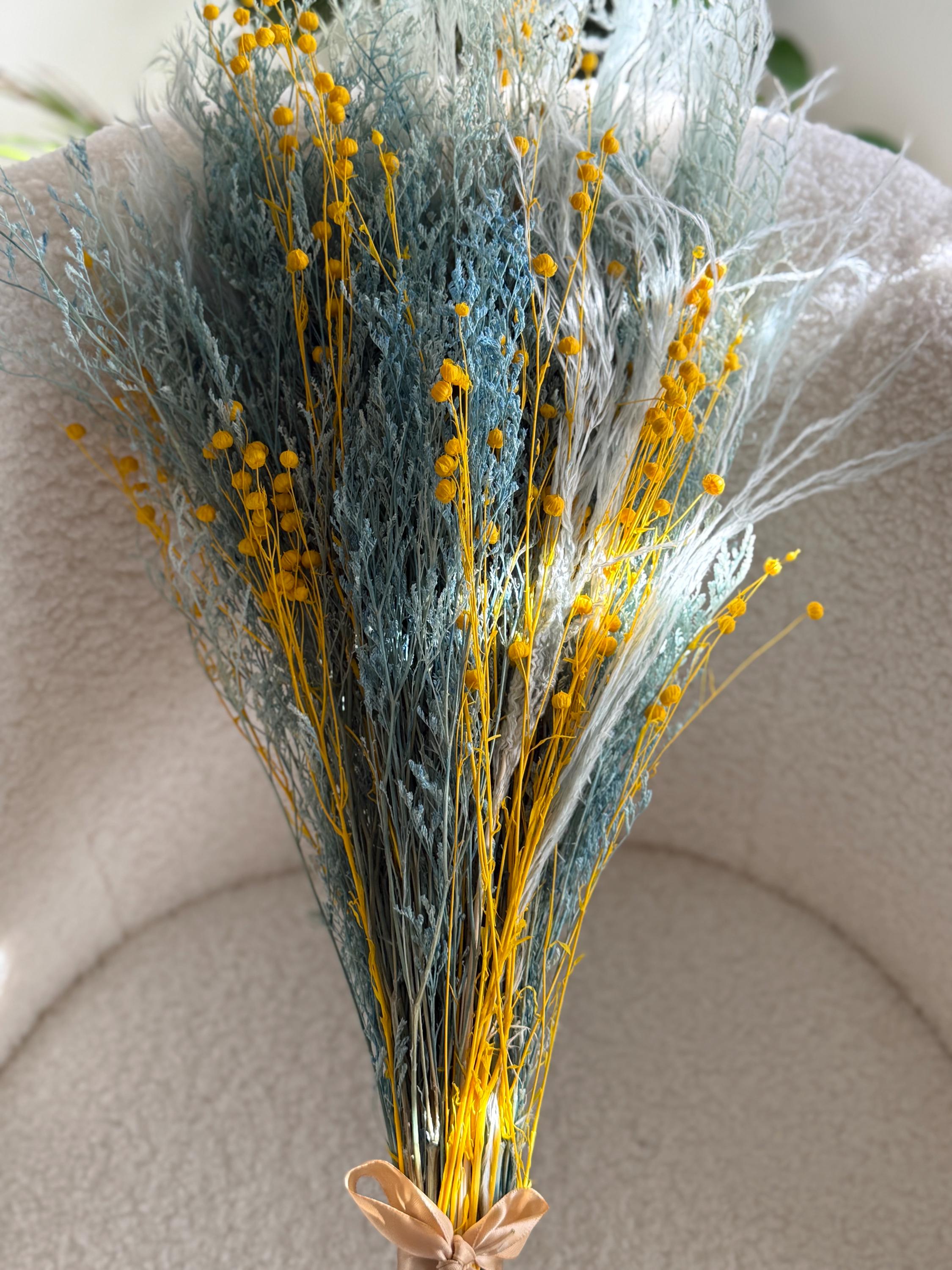 Dried misty with pampus grass in blue